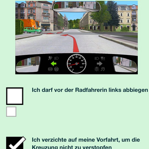 Wem müssen Sie Vorrang gewähren. Sie möchten nach links abbiegen. Sie möchten nach links abbiegen.
